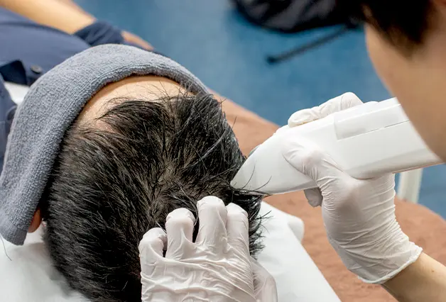 発毛成長因子やミノキシジルといったオリジナル発毛カクテルをミノキジェットを使用し、頭皮へ散布します。